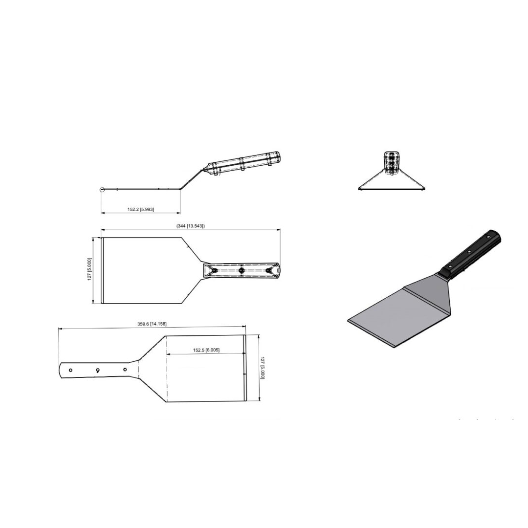 Grill Spatula, Stainless Steel, Black Plastic Handle, Heavy Duty, Commercial, 344x127mm, 13.5x5in