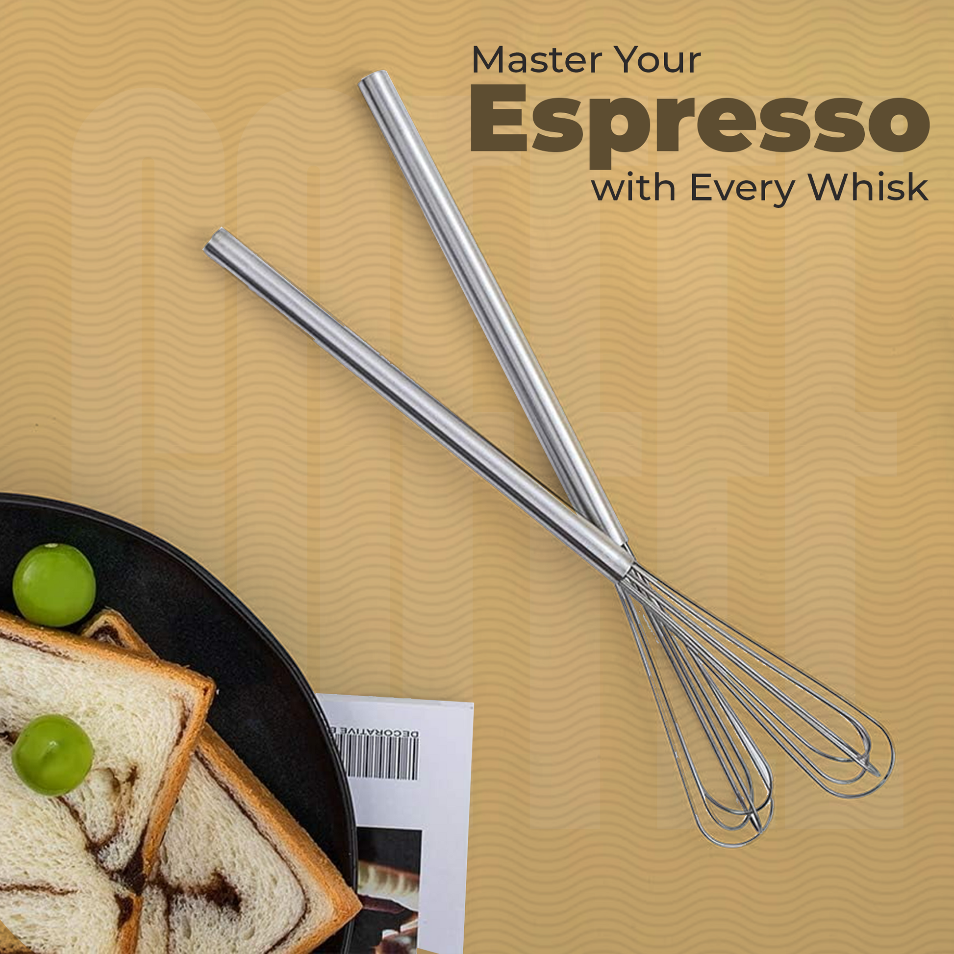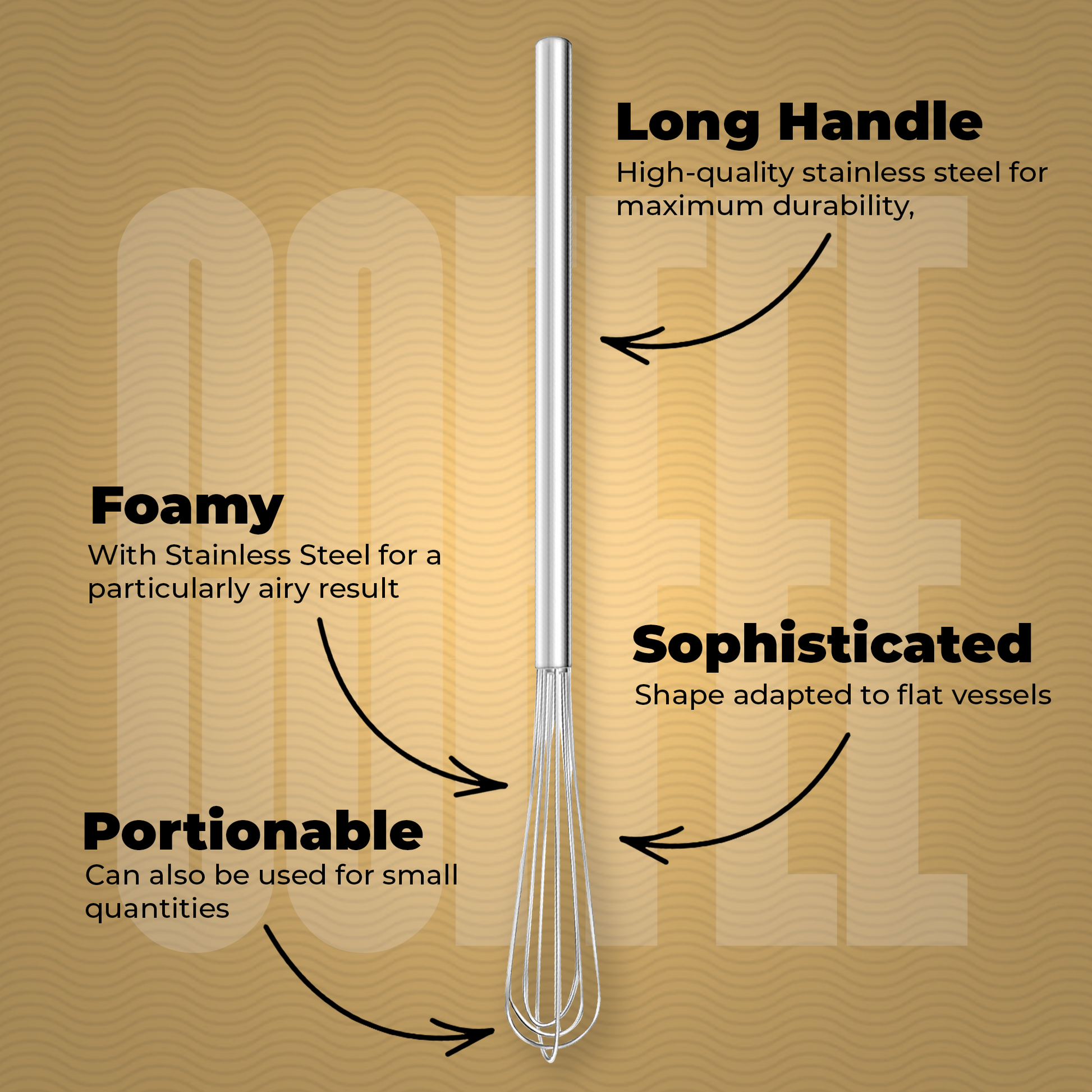 - 𝐋𝐎𝐍𝐆 𝐒𝐋𝐄𝐍𝐃𝐄𝐑 𝐇𝐀𝐍𝐃𝐋𝐄: An ideal espresso distribution tool, with a long slender handle and three different whisk shapes: flat, round, and triangular flat. Our Round Whisk Total Length:10.5in. / 26.7cm, Handle Length: 6.75in. / 17cm